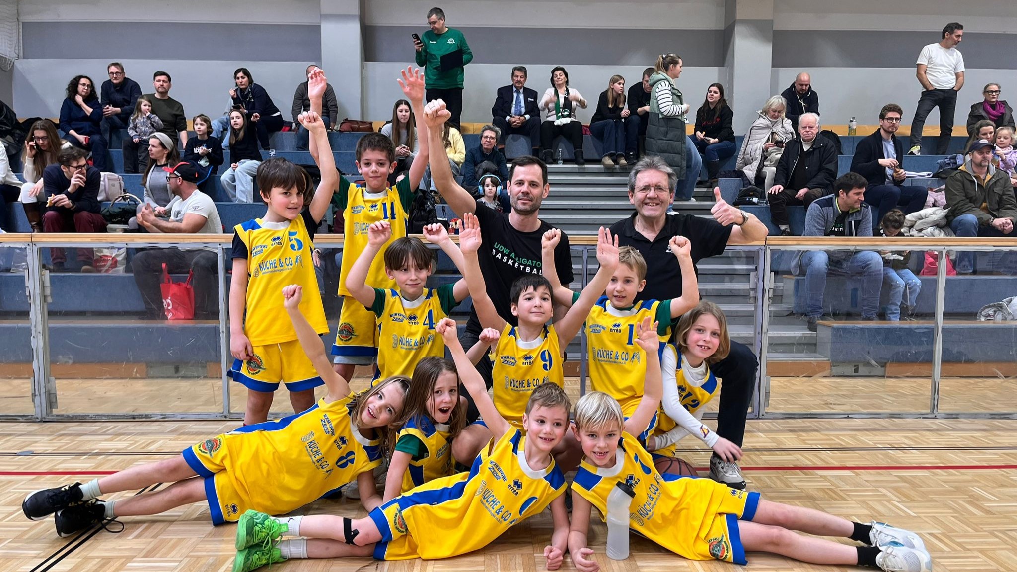 Am Sonntag trafen die MU14 Alligators auf die Dukes aus Klosterneuburg. In der Superliga hatte man bereits einen Sieg und eine Niederlage gegen dieses Team verbucht, diesmal fehlten den Dukes jedoch zwei wichtige Spieler – ein Sieg war daher klar das Ziel. Der Start verlief ausgeglichen, da die Alligators offensiv noch zu unkonzentriert agierten. Dorian sorgte für die ersten Punkte, Felix brachte von der Bank viel Energie, sodass man sich gegen Ende des ersten Viertels absetzen konnte. Im zweiten Abschnitt setzte man die Dukes mit aggressiver Defense unter Druck, erzwang Turnover und scorte viele Fastbreak-Punkte. Defensiv agierte man jedoch phasenweise zu passiv. Raphi Kunert setzte mit einem Buzzer Beater den Schlusspunkt zur klaren 52:24-Halbzeitführung. Trotz des deutlichen Vorsprungs waren die Coaches nicht ganz zufrieden, da der Ball zu wenig bewegt und Entscheidungen zu langsam getroffen wurden. Im dritten Viertel setzte das Team die Vorgaben besser um: Beni dirigierte die Offense stark, es entstanden viele schnelle Überzahlsituationen und erneut 30 Punkte in einem Abschnitt. Im Schlussviertel wurde viel rotiert, wodurch der Spielfluss etwas litt – am klaren 94:46-Sieg änderte das jedoch nichts.