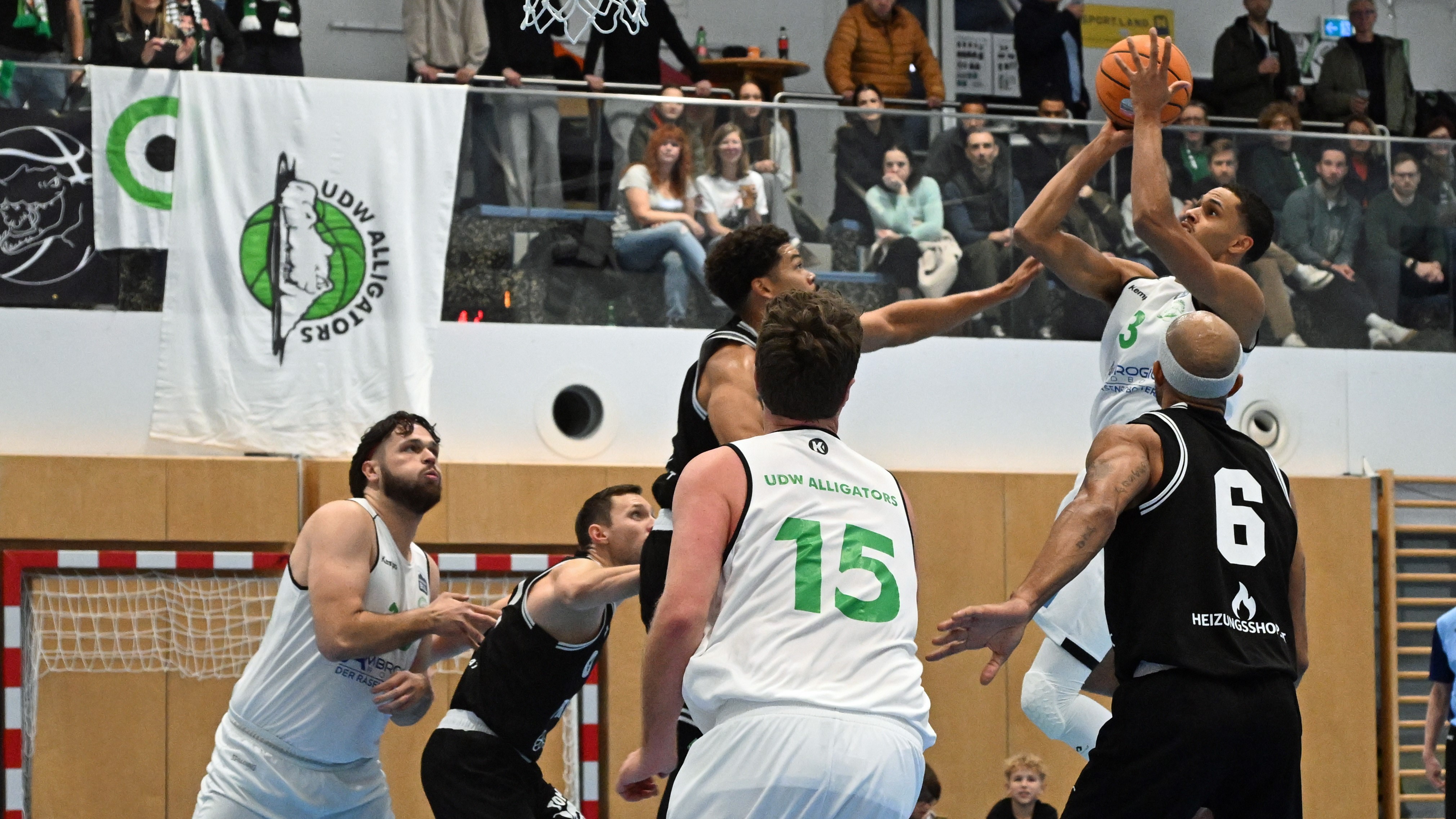 Die Alligators erwischten einen sensationellen Start in die Partie. Den Anfang machte Onwudiwe mit einem Tip-In, ehe Legionär Shawn Ray mit einem Jumper antwortete. Doch dann übernahm D’Angelo im Post das Kommando, wurde mehrfach gut in Szene gesetzt und sorgte für enorme Räume für seine Mitspieler. Jagsch mit einem Dreier, Shorstkyi und erneut D’Angelo per Layup zwangen die Piraten zu einer frühen Auszeit – 11:2 nach knapp drei Minuten. Auch danach trafen Jagsch & Co weiter hochprozentig, bis die 16:2-Führung erstmals durch die Gäste unterbrochen wurde. Zwar fanden die Piraten nun besser in die Partie, doch die Alligators hielten sie weiter stabil auf Abstand. Großer Jubel dann, als Neuzugang Konate seinen ersten Dreier versenkte – der erste von mehreren an diesem Abend. Das erste Viertel endete mit einer verdienten 24:19-Führung.